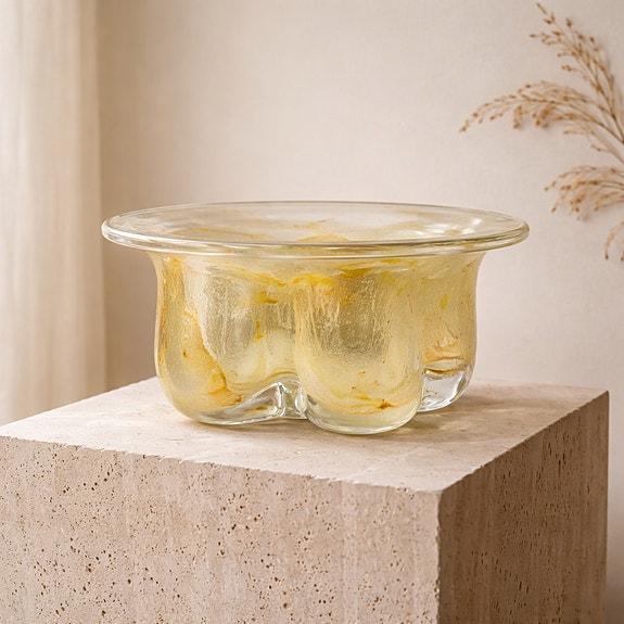 Vtg kunstglass fat, Finn Lynggaard ,Kløver serien, Randsfjord, 1970-tallet