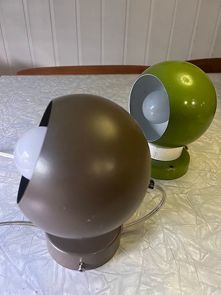 Vintage danske balllamper/kulelamper fra Frandsen og BA, grønn og brun