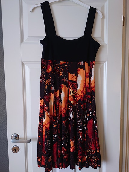 Behagelig elastisk sommerkjole fra Danske Molly-Jo str M, orange og svart