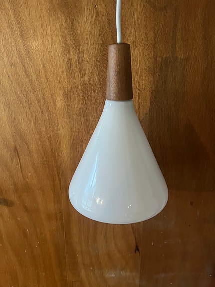 Minimalistisk takpendel i glass og eik, Nori 18 fra danske Nordlux, vintage-preg