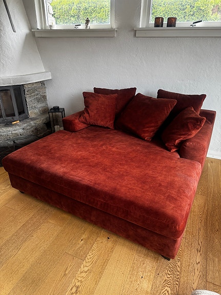Sjeselong / daybed i velur-look m/oppbevaring
