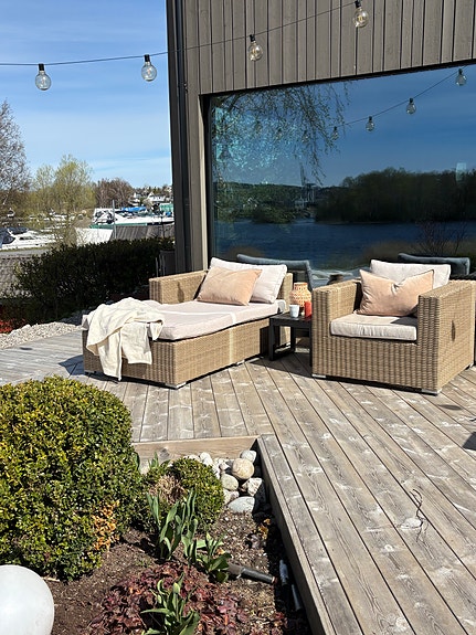 Loungesett i kunstrotting med puter