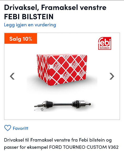 Drivaksel fram Ford Tourneo & Transit Custom høyre & venstre