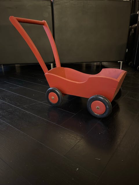 Rødmalt liten dukkevogn