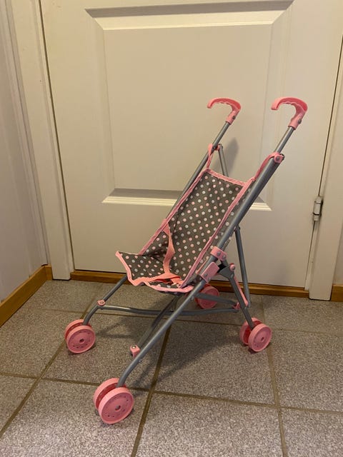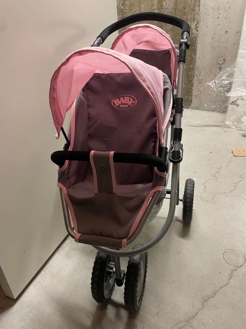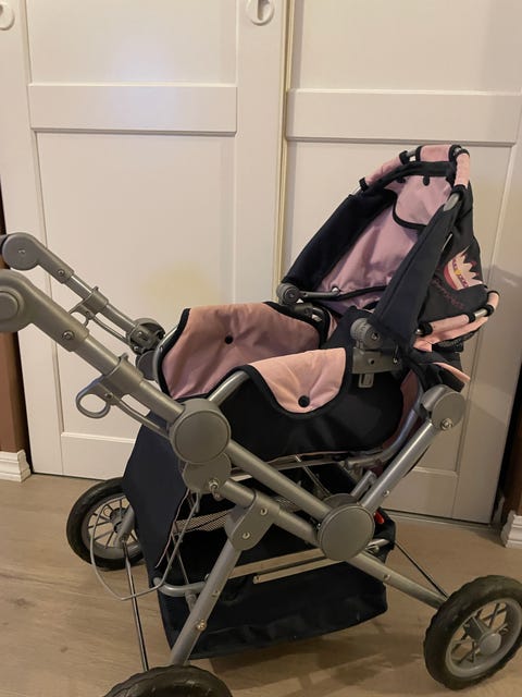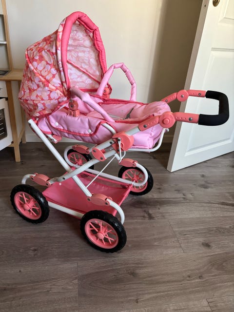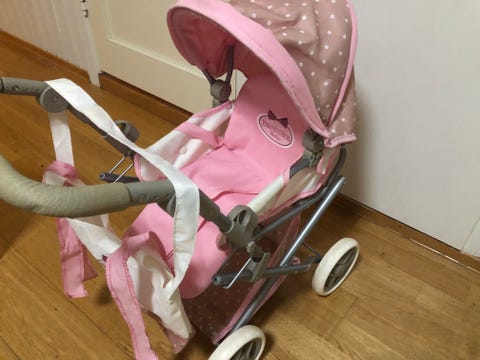 Dukkevogn i rosa selges