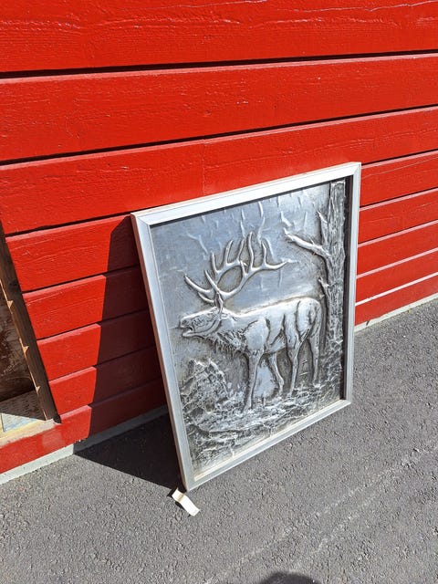 Relieffbilde av elg i metallramme