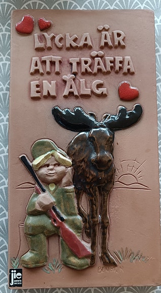 Veggrelieff fra JIE, med elg jeger motiv