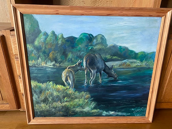 Originalt maleri – Elg ved vann – signert K. Stanger (1992)
