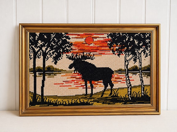 Retro Brodert bilde - Elg i solnedgang