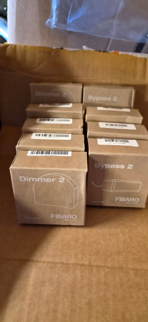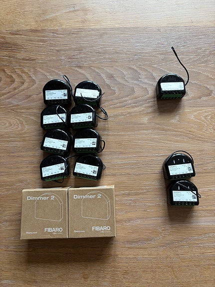 5stk Fibaro dimmer 2 og 4stk bypass 2