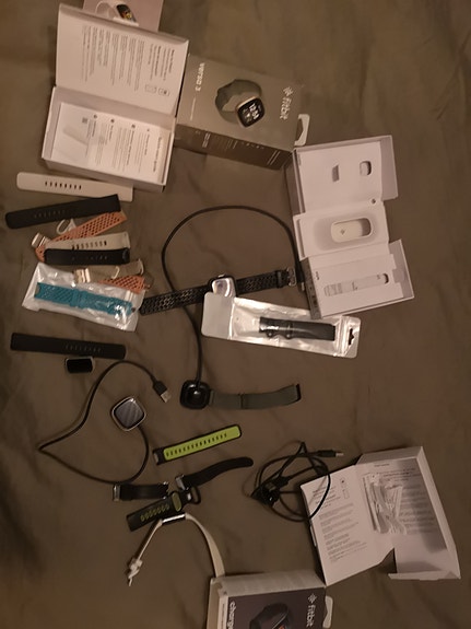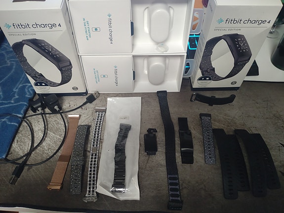 Fitbit versa 4 og div ekstra bonus stuff Charge 5 aktivitetsmåler x2