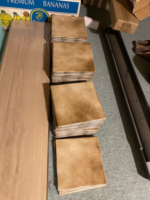 3 paller med fliser gis bort