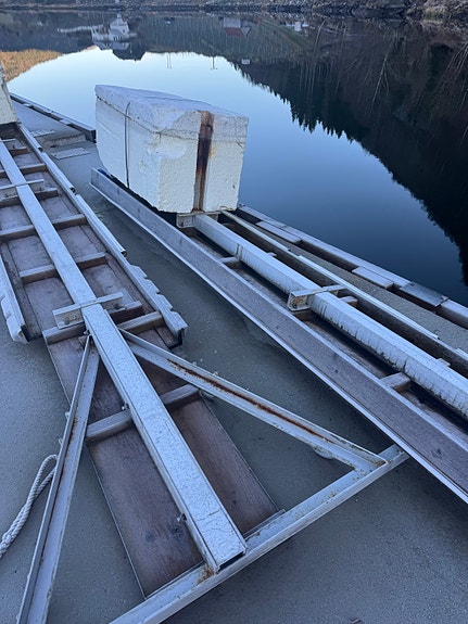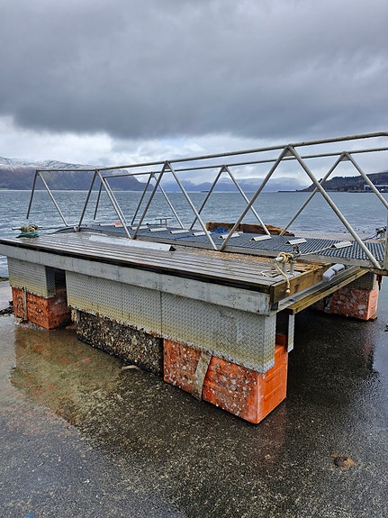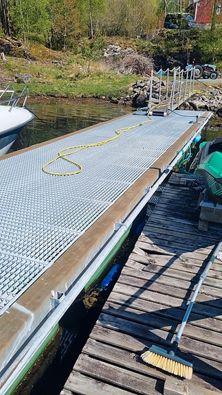 Flytebrygge i galvanisert stål ramme, må hentes.