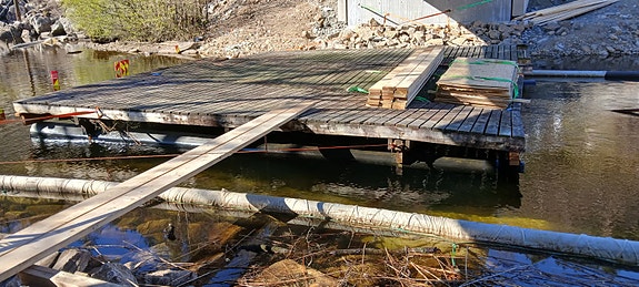 Flytebrygge med pontonger av PE-rør selges BILLIG