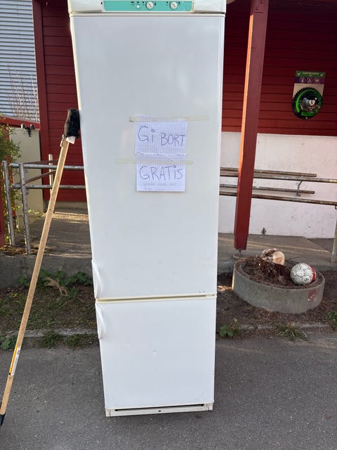 Gis bort! Høyt hvitt kjøleskap med fryser