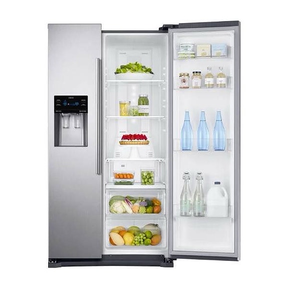 Samsung side-by-side kjøleskap fryser i stål med is- og vanndispenser