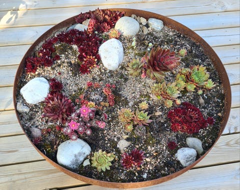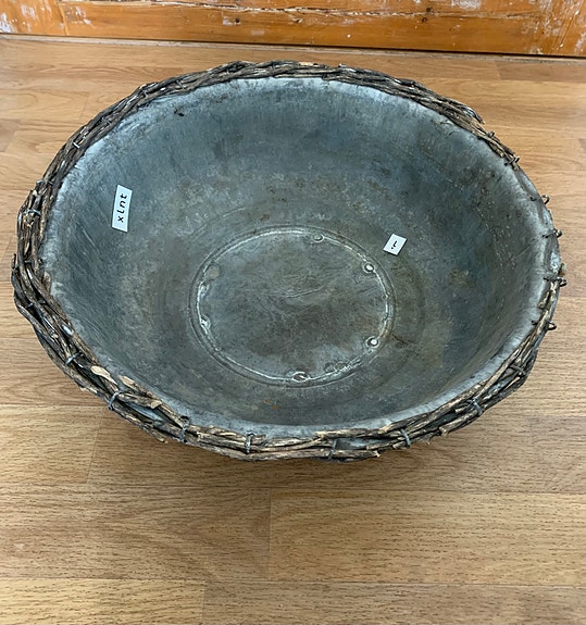 Stort fat/skål i zink og rotting – til planter eller f.eks, fuglebad