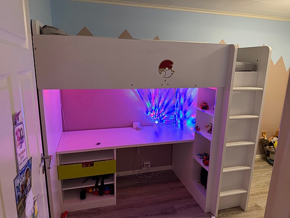 IKEA høyseng med skrivepult og garderobe til barnerom