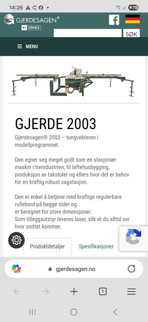 Gjerdesag / Ernex 805 bordsag med rullebord