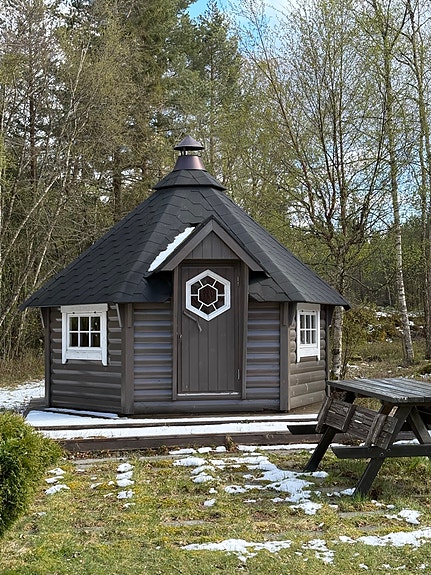 Ny Grillhytte Original 10 kvm. 120 cm vegghøyde. Mwd grill. pipe og benker