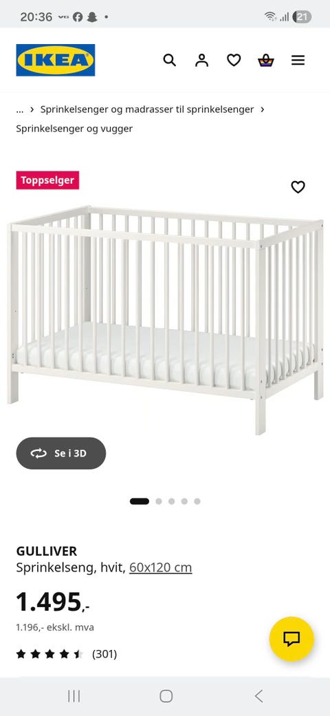 IKEA Gulliver sprinkelseng (madrass mm kan følge med)