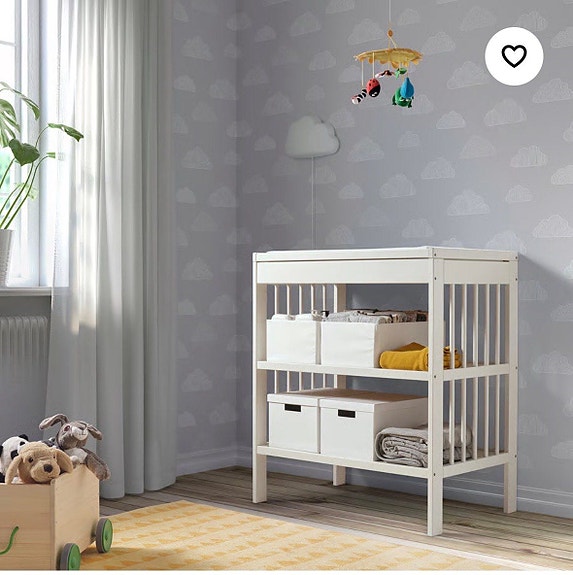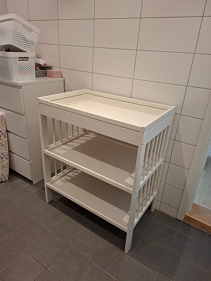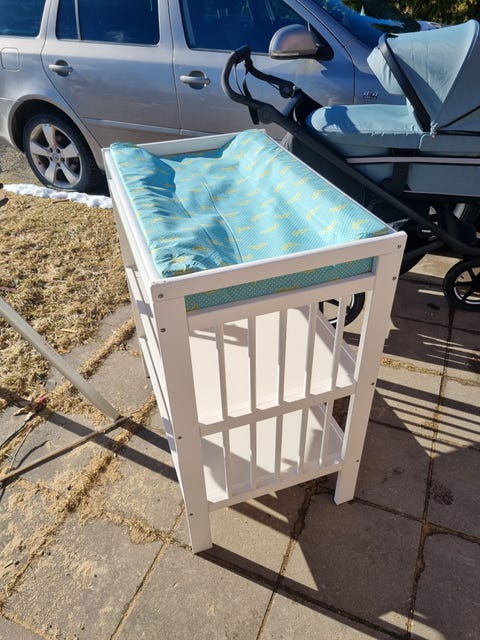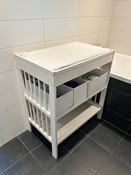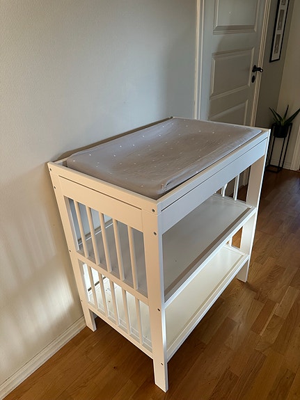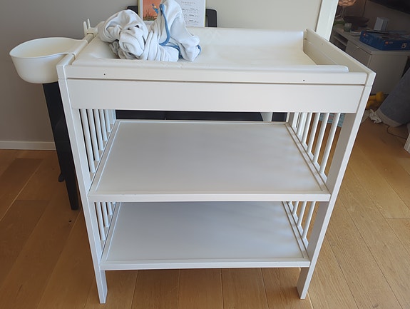 IKEA Gulliver stellebord med stellematte og trekk, hvit