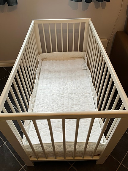 IKEA Gulliver cot white + Matress looks in new condition + Fabric guard