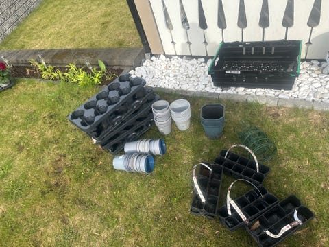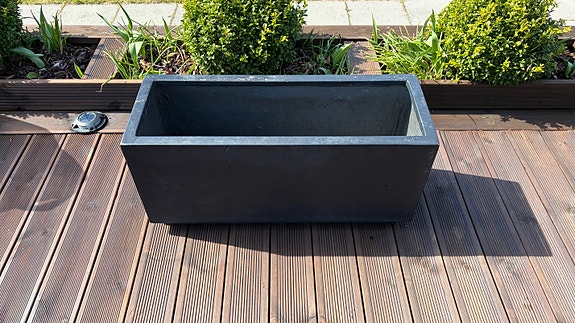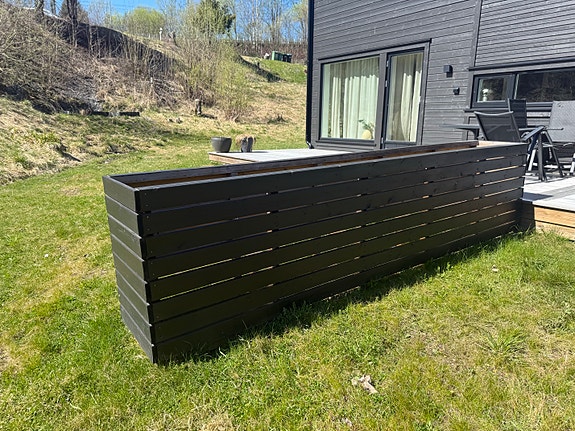 3 stk rektangulære svarte plantekasser til terrasse/hage