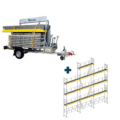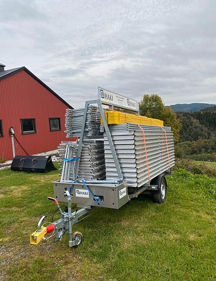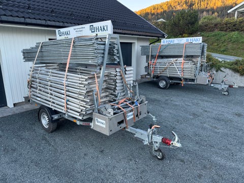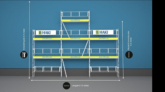 Stillas til leie Arendal. HAKI 12,2 x 6,5 meter (72m2) på henger.