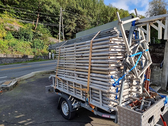 Haki alleminium stillas leies ut .på denne er det 120 plattinger.