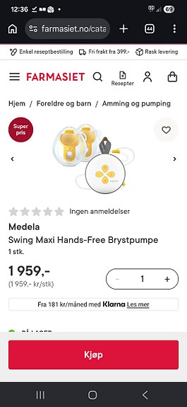 Medela handsfree swing maxi brystpumpe, medela harmony og medela oppsamler