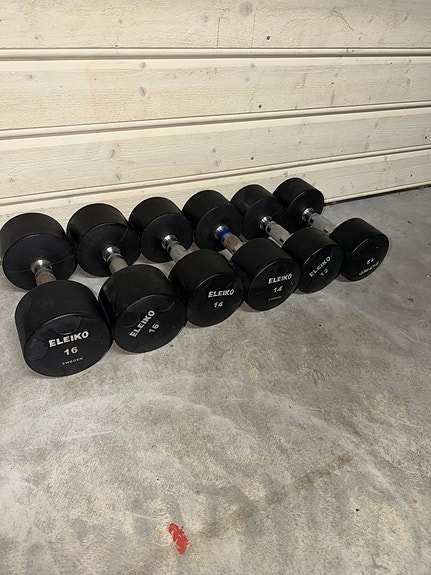 Par med 7, 8, 9 og 10 kg støpejerns hantler ønskes kjøpt