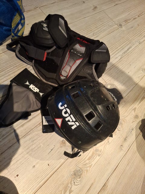 Ishockeyhansker og hjelm