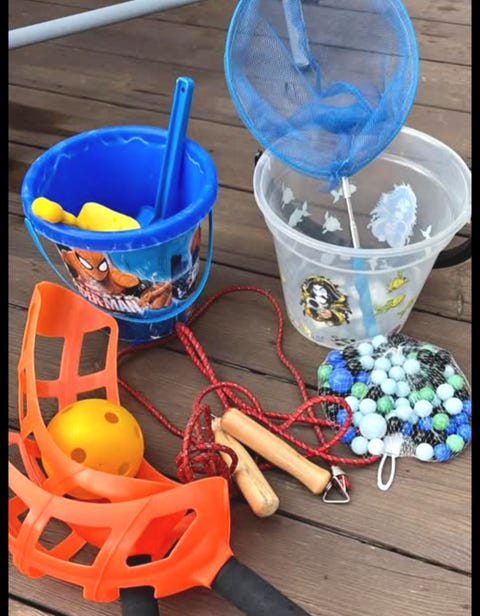 Leketøysett for barn bøtter nett hoppetau og baller