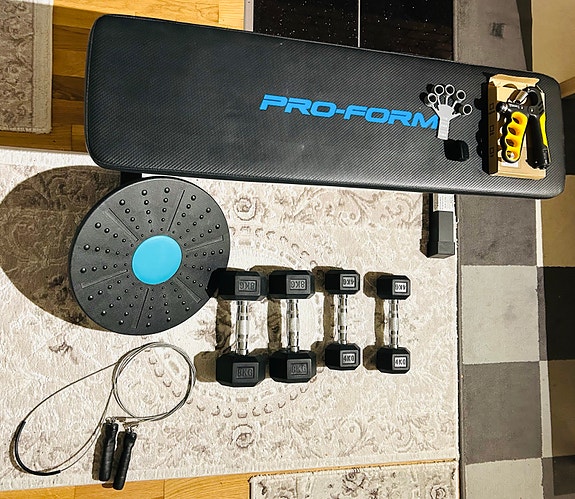Treningsutstyr treningsbenk manualer hoppetau balansebrett grepstrenere