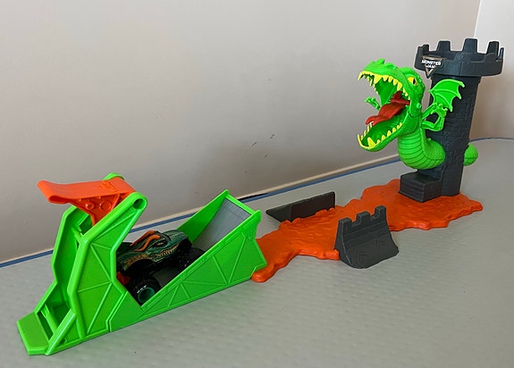 Monster Jam Dueling Dragon-lekesett med eksklusiv dragebil og utskyter