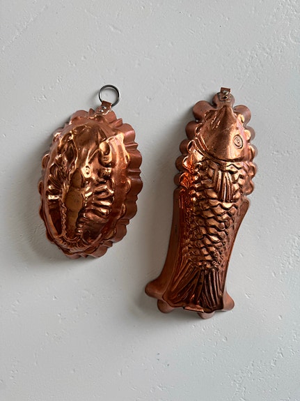 Flotte vintage kobberformer, fisk & hummer, rustikk dekor/kjøkkenpynt