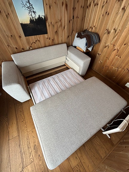 Koselig 2-seter sofa – perfekt til hytte eller gjesterom