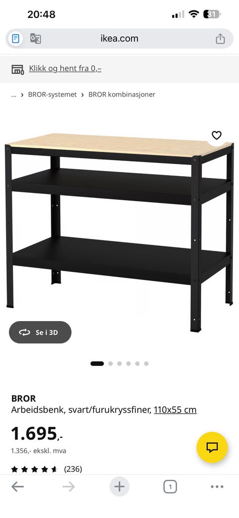 IKEA bror arbeidsbenk med 2 hyller