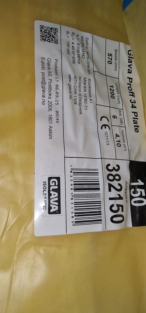 Glava Proff 34 isolasjon - 300 kr pr rull