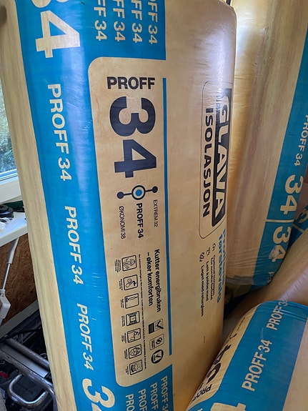 Isolasjon: Glava Proff 34, Rockwool Flexi A-plate 34 og Hunton Nativo