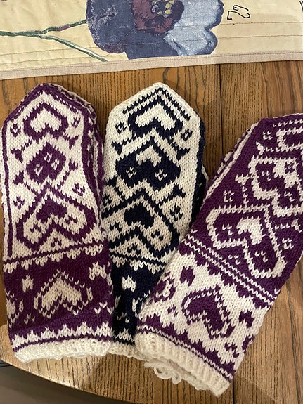 Ullvotter, hjemmestrikkede . Kjempefine julegaver!! 350,kr pr par.