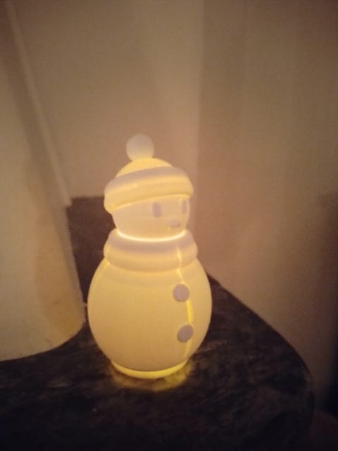 Snømann med lys julepynt
