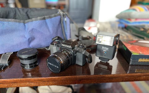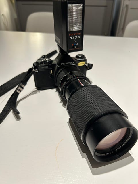 Pentax kamera med linse og blits