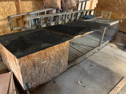 Hjemmelaget kaninbur med utegård