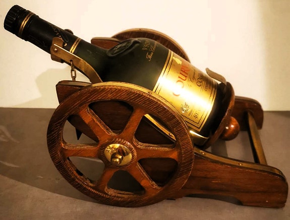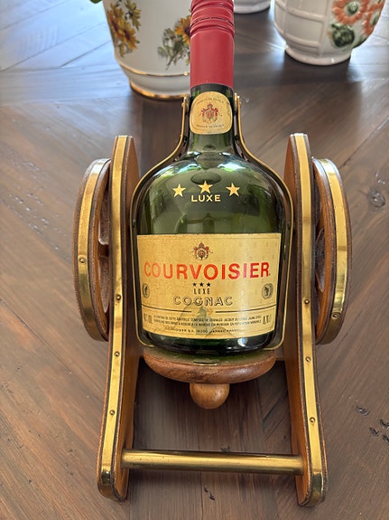 Vintage Courvoisier Cognac "Kanon" – Dekorativ flaskeholder i tre & messing
