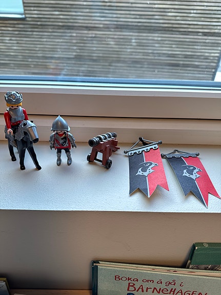 Playmobil/playmo ridderfigurer med hest, kanon og bannere