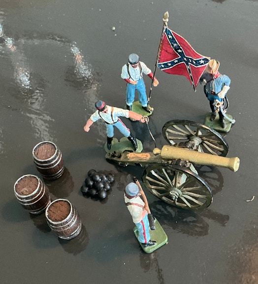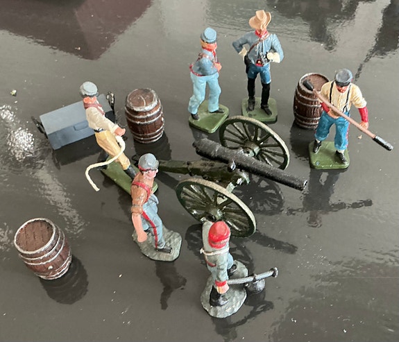 Metall soldater, 2 stk. + 1 stk. kanon