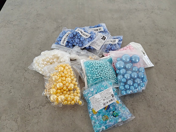 Bryllupsdekorasjon – blå/gull tema (perler, led flytelys, confetti kanon mm.)