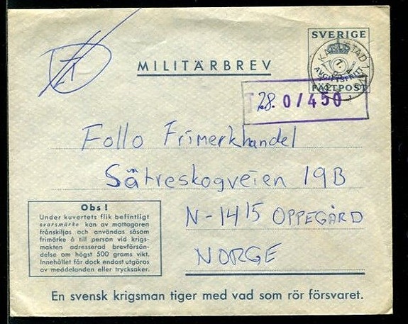 90% rabatt: Sverige 1992 Militärbrev (Brukt), sendt fra Karlstad